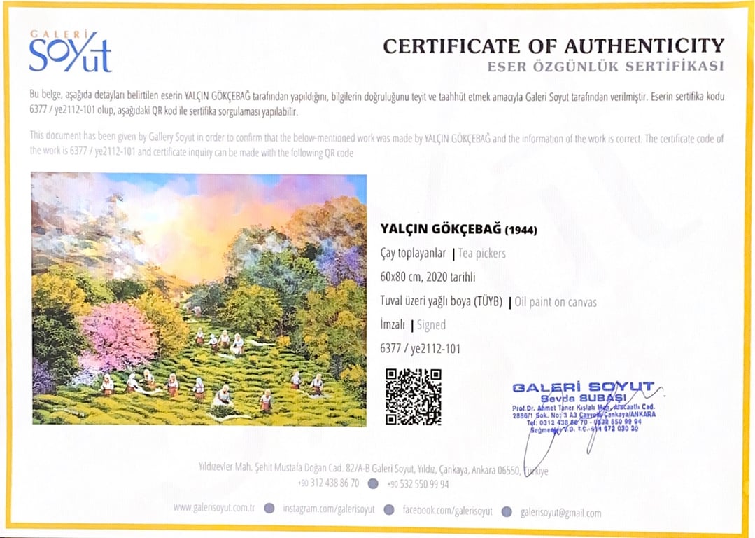 Çay Toplayanlar - Tuval üzerine yağlıboya, imzalı - 60 x 80 cm Eserin Galeri Soyut tarafından verilmiş sertifikası vardır - 2020