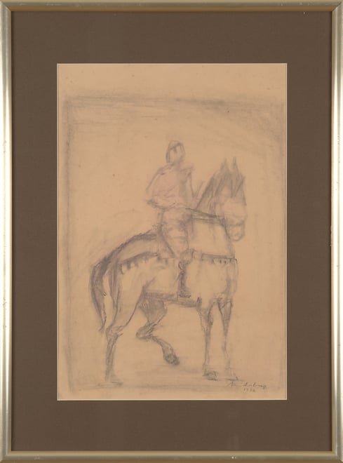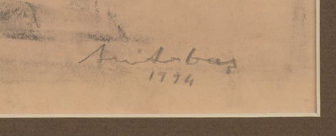 Figüratif Kompozisyon - Kağıt üzerine kara kalem, imzalı - 39 x 27 cm - 1974