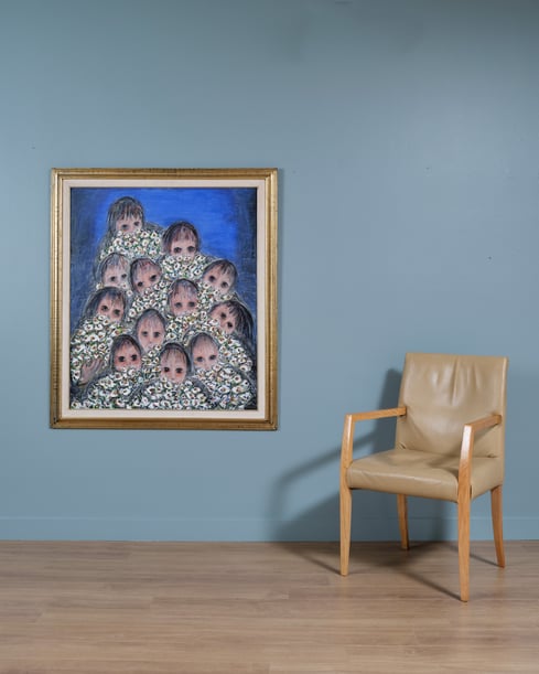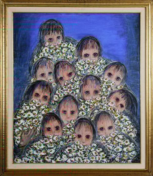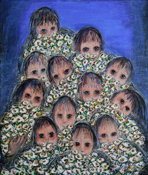 Çiçek Sunan Çocuklar - Tuval üzeri akrilik, imzalı - 100x75 cm