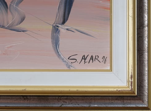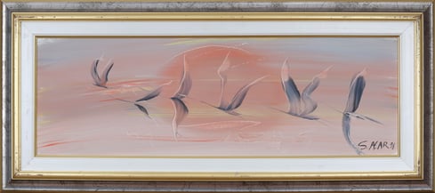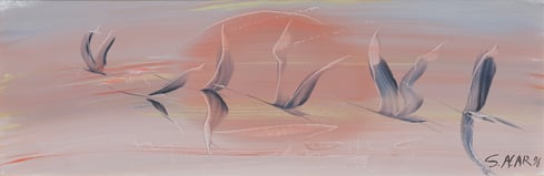Kuşlar - Duralit üzerine yağlıboya, imzalı - 21 x 66 cm - 1998