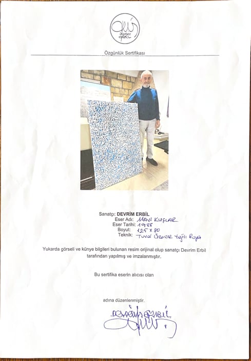 Mavi Kuşlar - Tuval üzerine yağlıboya, imzalı - 125 x 80 cm - Eserin sanatçı tarafından imzalı sertifikası vardır - 1988