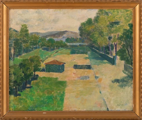 Peyzaj - Tuval üzerine yağlıboya, imzalı, 1950 ler, sertifikalı, kataloge - 50 x 60 cm - 1950