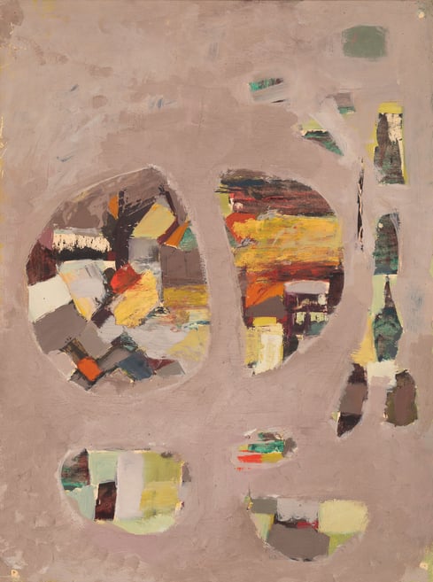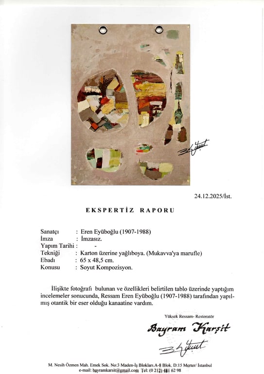 Soyut Kompozisyon - Karton üzeri yağlıboya (mukavvaya marufle), imzasız - 65 x 48,5 cm Eser Yüksek Ressam Sayın Bayram Karşıt tarafından onaylıdır.